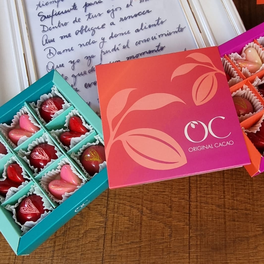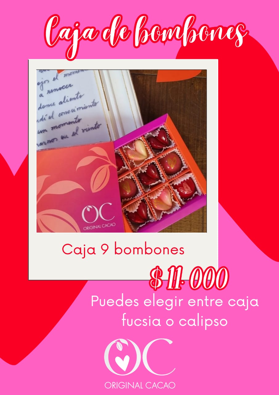 Disfruta San Valentín con estos deliciosos sabores que trae nuestra caja de 9 bombones, que contiene en su interior bombones en casquillo de chocolate bitter 56% cacao relleno de coco tipo prestigio, relleno de fresa con un toque de espumante y el relleno Dubai que es tendencia, elaborado con una crema de pistacho y masa filo y por supuesto nuestro infaltable bombón de maracuyá en casquillo de chocolate blanco 31%cacao. recuerda que puedes incluir un hermoso ramo de flores en tu compra para hacer el match perfecto.